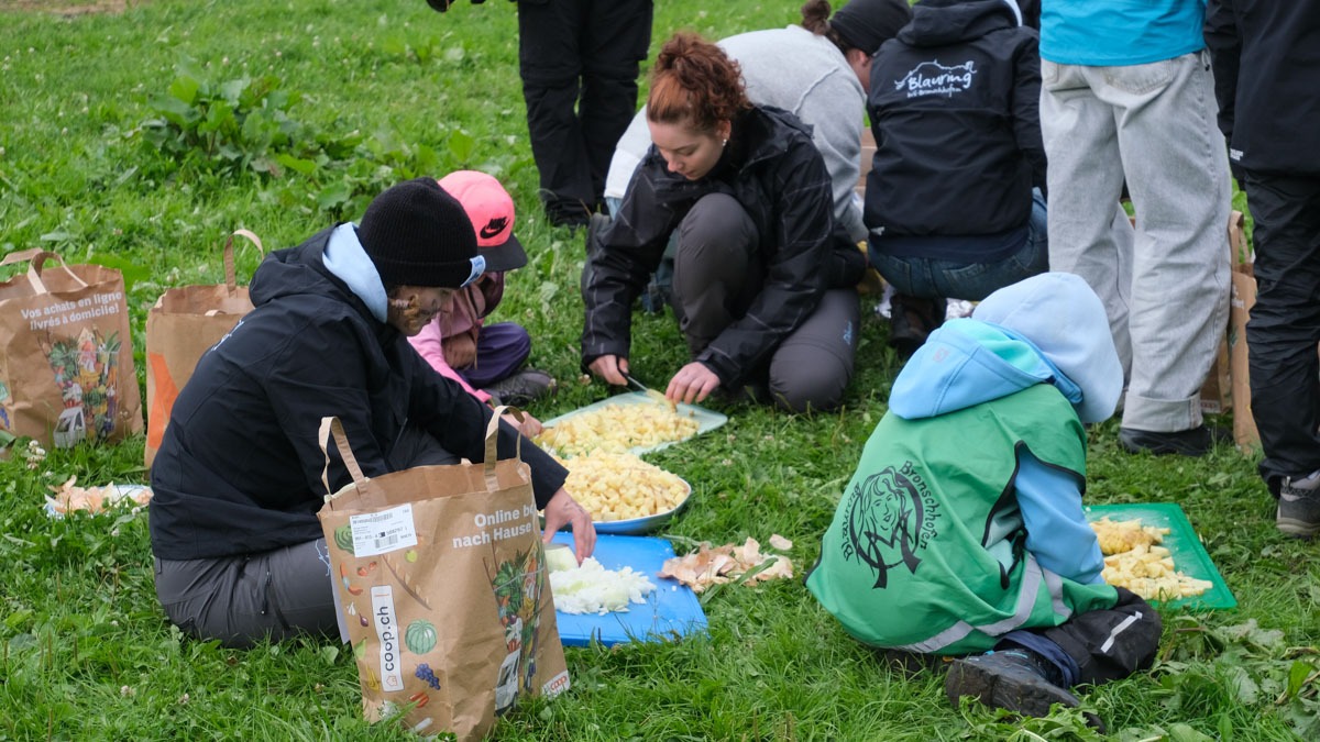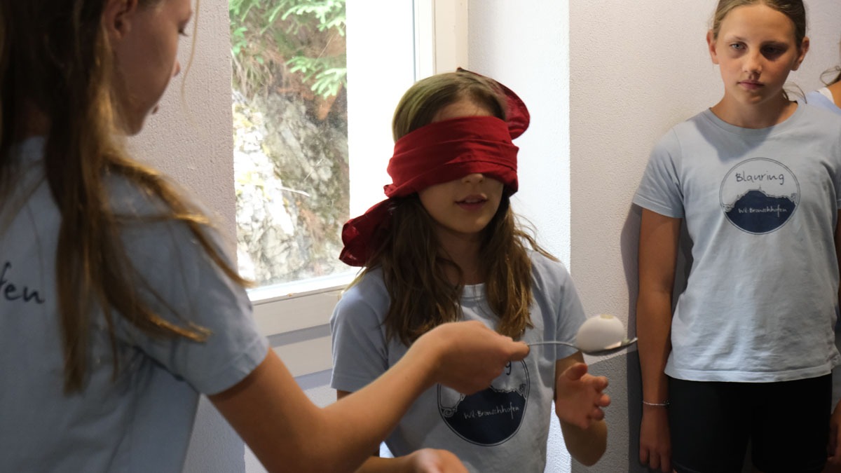 Zum Zmittag gab es Riz Casimir. Gestärkt starteten wir dann in den Nachmittag. In einem Postenlauf durften wir Erfahrungen sammeln, wie Menschen mit körperlicher Beeinträchtigung leben könnten.