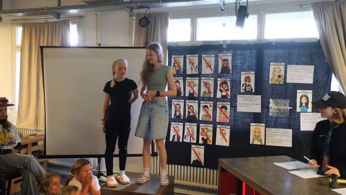 Wir tauchten in die Welt der sozialen Medien ein und die Kinder lernten, Fake-Bilder zu erkennen sowie einiges über die Werbung und den Medienkonsum. Am Nachmittag standen Gruppen- und Scharfotos auf dem Programm. Anschliessend studierten die Kinder in verschiedene Gruppen Tänze ein, die sie vor der Jury präsentierten. Die vier Hauptverdächtigen (Manaya Malt, Tibu Timer, Chipsy Champ und Nahari Naschkatze) wurden wegen des Diebstahls der goldenen Flugzeugtrophäe angeklagt. Die Wahrheit kam ans Licht – es stellte sich heraus, dass Chipsy Champ die Übeltäterin war. Zum Abschluss des Lagers vergnügten sich alle bei Spiel und Spass am Casinoabend. Der krönende Abschluss war ein feined Glace-Dessert.