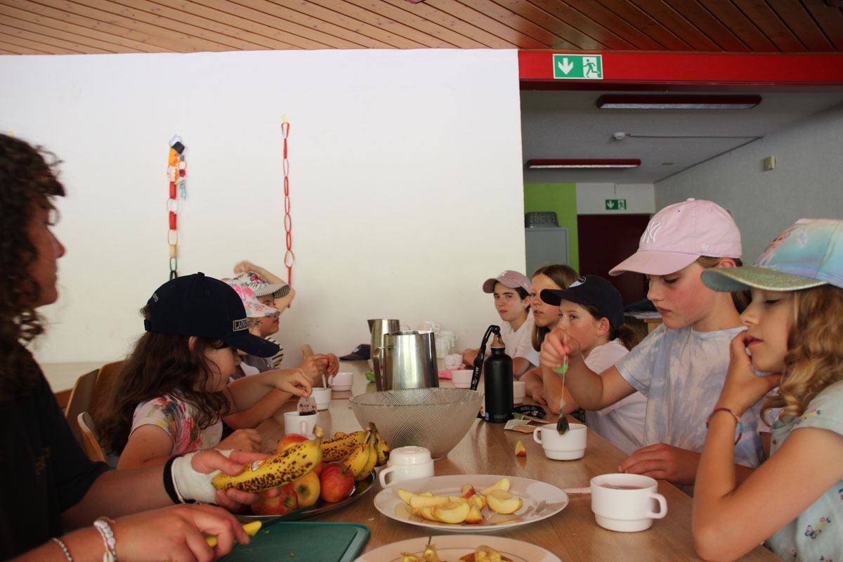 Angekommen auf der Rennbahn von Toad‘s Pilzschlucht begannen wir den Morgen mit einer neuen Art zu kommunizieren. Die Mädchen lernten heute die Grundlagen der Gebärdensprache, um auch in Situationen,, in denen man leise sein muss, sich unterhalten zu können✊✋☝🤲. Nach dem Mittagessen geht es für uns auf die Eierfarm. Es gab ein Erdbeben in der Pilzschlucht und die Familie von Toad hatte zu wenig Energie, sich zu befreien🥚🍄. Die Eier, die gesammelt wurden, sorgten für viel proteinreiches Essen für die gesamte Toad Familie, dass sie sich aus der Schlucht befreien konnten💪. Am Abend wurden schliesslich die Toad‘s aufgemuntert durch verschiedene Theater 🎭 💃. Zur Feier des Tages gab es am Ende des Abends unser jährliches TamTam-Ritual 🍮. Nun gehen wir erholt und zufrieden ins Bett und freuen uns auf einen aufregenden Tag morgen🤗💤