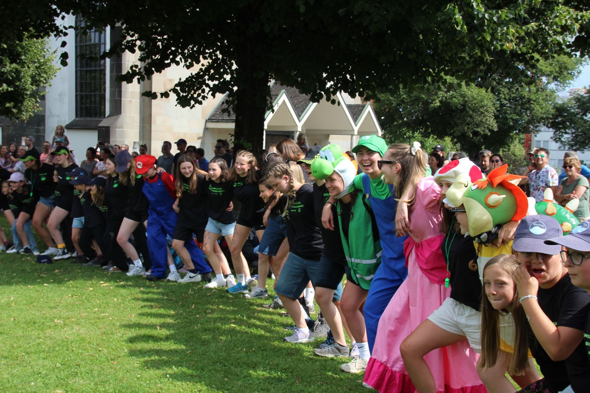 Der Blauring Wil-Bronschhofen war für eine Nacht auswärts, wir hatten nämlich eine Mission… Am Sonntagmorgen erhielten wir einen Brief vom bösen und mächtigen Bowser. Er forderte von uns, Hauptcharakter der Mariokartwelt zu werden und drohte, dass er alle Strecken zerstören wird. Wir einigten uns, dass wir seine Festung stürmen und packten unseren Rucksack. Nach einer Einführung mit der Kartenkunde wanderten wir los zur Bowser Festung. Dort wurden die Hauptcharaktere von Mariokart gestärkt und Items erkämpft, sodass Bowser beim grossen Rennen am Abend keine Chance mehr hatte 🏁. Nachdem wir den Znacht über dem Feuer genossen haben, richteten wir uns in den Berlinern ein. Und schon bald durften wir in Ruhe einschlafen… Doch am morgen früh mussten die Mädchen geweckt werden, da Bowser doch noch einen offenen Wunsch hatte: Er möchte gerne einen Wassergraben um seine Festung 🏰. Also machten wir als Morgensport ein Geländespiel, in diesem die Gruppen Wasser in Reagenzgläsern gekauft haben und so Bowser helfen konnten. Bowser zeigte sich als dankbar und lieb, sodass wir uns den Zmorgen in seiner Festung verdient haben und uns zurück auf den Weg ins Lagerhaus machten. Dort empfing uns Peach und lud uns zur Erholung zur Peach-Beach ein🏝🌺. Wir erlebten verschiedene Posten zur Entspannung und feierten am Abend noch eine Beachparty mit feinen Mocktails und verschiedenen Spielen🍹.